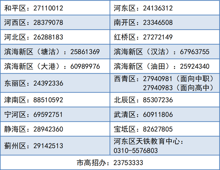 答:各区招办和市高招办在填报志愿期间的咨询电话为: