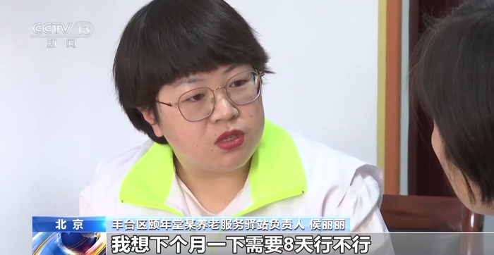 北京市丰台区颐年堂某养老服务驿站负责人 侯丽丽:家属也希望灵活掌握时间的安排。我这个月不需要4天照护,我想下个月一下需要8天行不行。比如今天我只想给老人提供助浴,你给我来2个小时。可能下次我想要10个小时你就来10个小时。