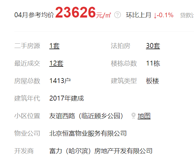 公开信息显示,富力江湾新城地处哈尔滨道里区沿江核心地段,项目一期于2014年10月29日完成交房。房天下数据显示,富力江湾新城目前二手房均价为2.3万元/平方米。