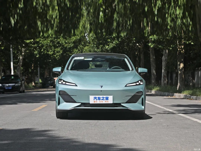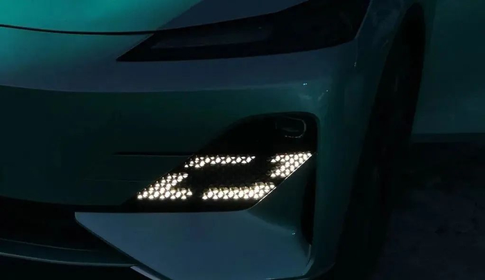 在设计层面,深蓝SL03拥有鲜明的新能源风格。前脸采用封闭式设计,视觉效果比较扁平。分体式头灯常被用来营造前卫气息,犀利的上灯组集成了日行灯、转向灯以及示宽灯,下方则是远近光一体式主光源和互动灯语矩阵。