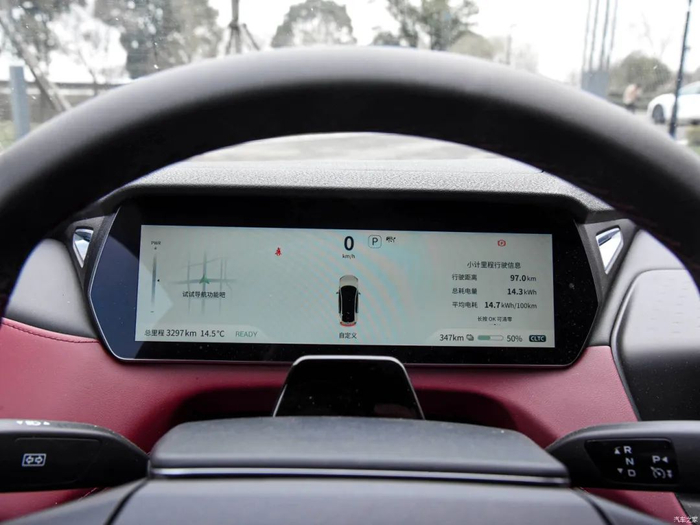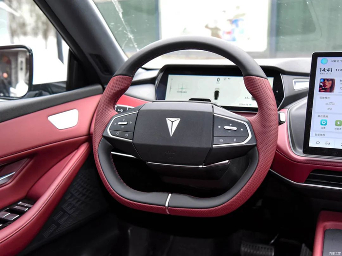 平底造型方向盘采用两种颜色的皮质包裹,质感比较出色但运动感并不算强。全液晶仪表尺寸为10.2英寸,造型更偏扁平,能够显示导航、行驶信息、胎压等丰富内容。