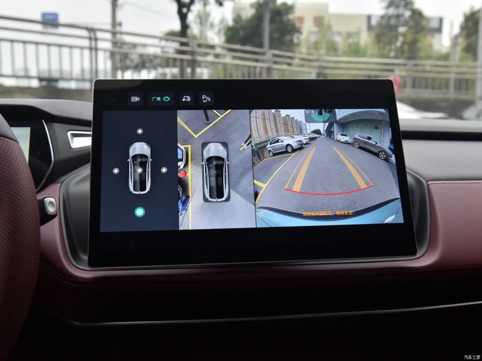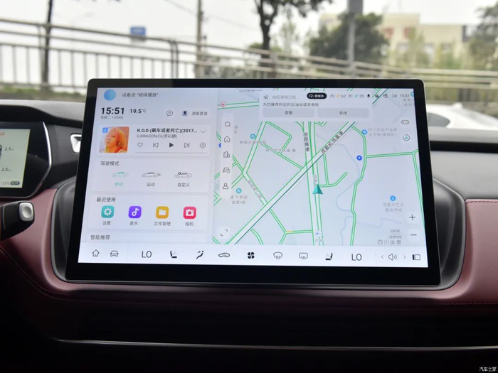 14.6英寸中控大屏支持左右旋转,水平转向角度为±15°,灵活性出色。车机系统由高通骁龙8155芯片提供支持,操作流畅度无需担心。功能方面,在线导航、语音识别控制、车联网、Wi-Fi热点、全景影像、行车记录仪、哔哩哔哩、唱吧等功能都有配备,足以胜任日常使用。