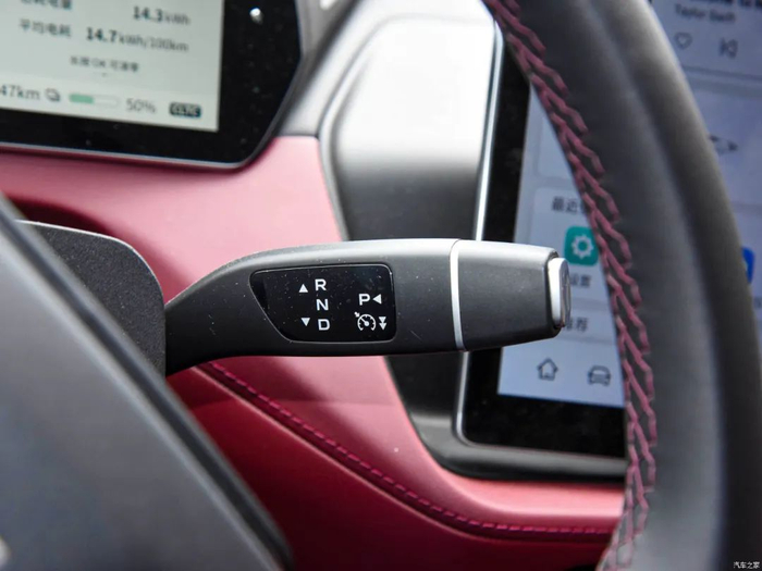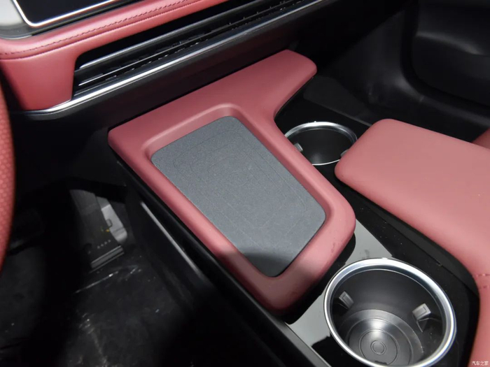 中控T型区设计感出色,配备有手机无线充电模块,下方也预留了储物空间,而且呈斜对角分布的杯架也挺有特点。是不是感觉这个位置有点空?因为深蓝SL03采用了电子怀挡。