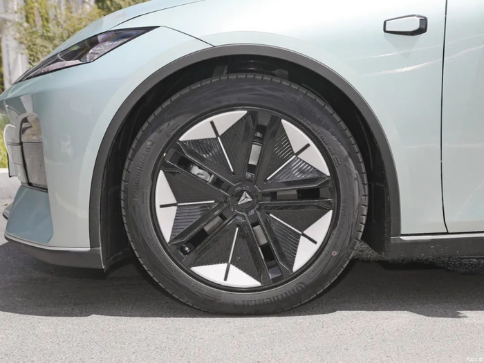 19英寸低风阻轮圈造型比较个性,与之匹配的是马牌EcoContact 6Q系列轮胎,规格为245/45 R19。