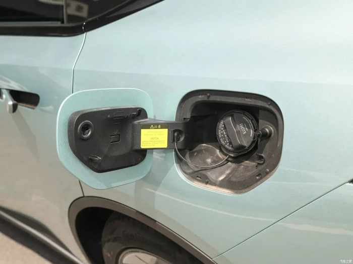 侧面上扬的腰线以及侧裙线条带来俯冲的视觉效果和运动的格调。侧窗线条采用亮黑配色同时在A柱、C柱位置还分别向外进行了延伸。作为一款增程车型,SL03的加油口位于左后翼子板,充电口位于右后翼子板。