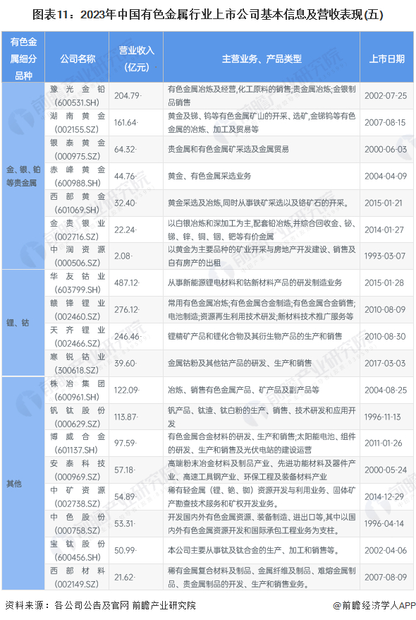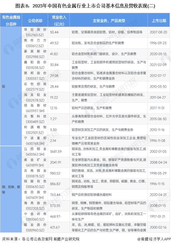 【最全】2023年中国有色金属行业上市公司全方位对比(附业务布局汇总、业绩对比、业务规划等)