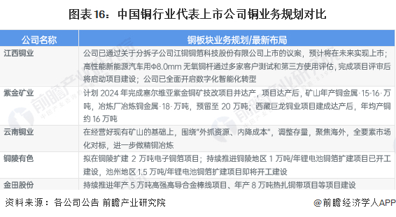 中国有色金属行业铜细分领域代表上市公司业务规划对比