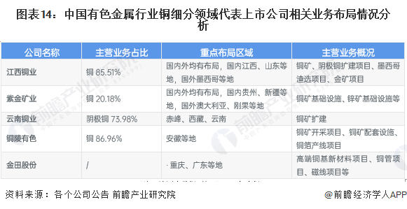 中国有色金属行业铜细分领域代表上市公司业务布局对比