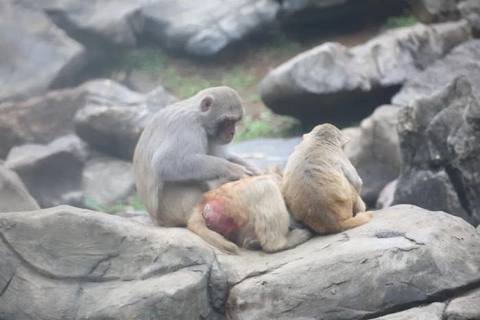 疑似遭到猴群集体霸凌