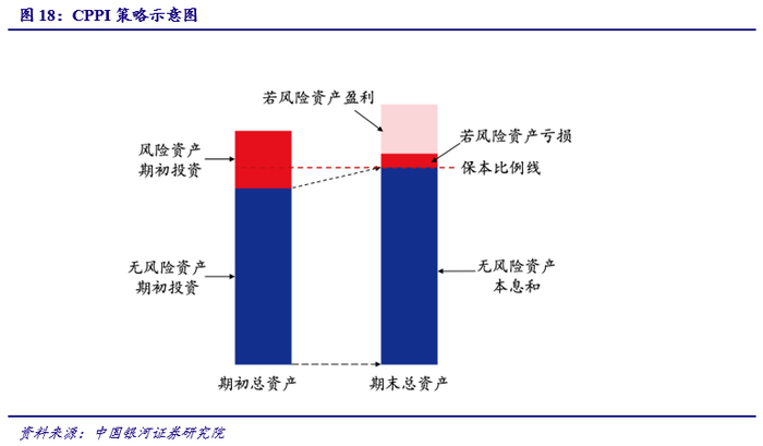 我们基于TOP30组合结合恒定比例投资组合保险策略(CPPI),构建“固收+TOP30组合”资产组合。CPPI策略通过对投资组合进行动态调整,使之既能提供下行风险的保护,又能最大化潜在收益。CPPI策略将资产分配在低风险资产和风险资产上,通过定量化的资产配置,用投资于低风险资产上的现金净流入来冲抵风险资产组合潜在的可能亏损,并通过投资于风险资产来获得超额收益。