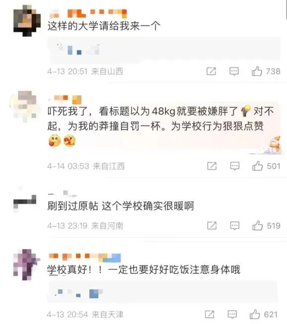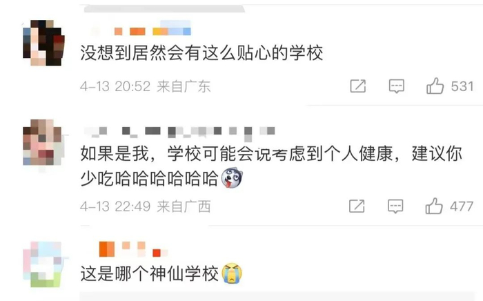这件事引发了网友们的热烈讨论,有网友赞这是“神仙学校”,还有网友说,自己可能会被学校“建议少吃”。