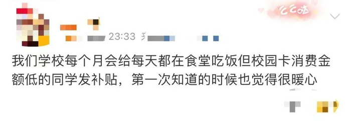 还有网友留言表示,自己的学校会根据校园卡消费金额给一些学生发补贴。