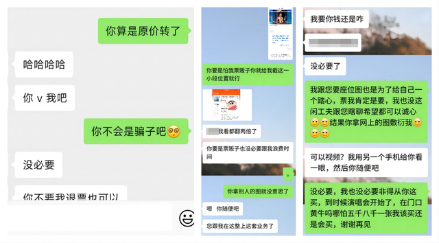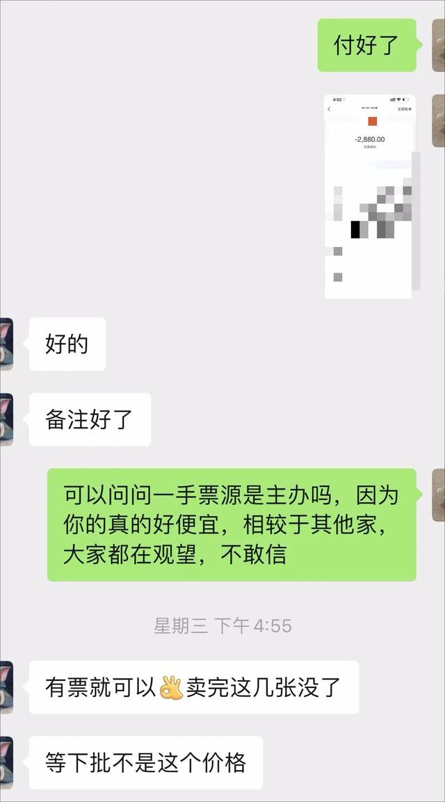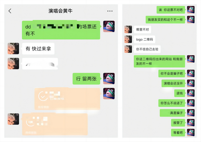 开演唱会前夕,骗子谎称“已买到票但家中有事去不了”“跟前任分手含泪转让”等理由在网页发布售卖门票的信息,引诱歌迷转账购票,歌迷付款成功后,往往只能收到虚假的网络订票截图,而骗子早已逃之夭夭。