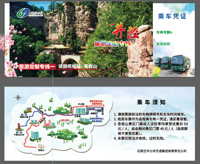 3.发车时间:谈固公交枢纽站(7:00)→省博物院(7:10)→北国商城(7:15)→新百广场西(7:25)→长城桥(7:35)→西王枢纽站(7:45)→上庄镇政府(8:00)→苍岩山景区(9:00)→16时返石。