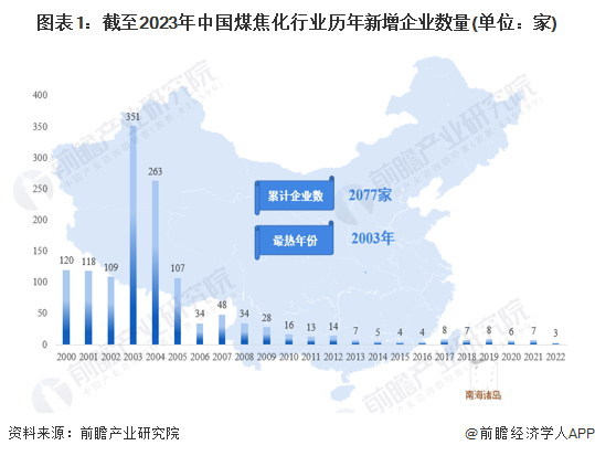 根据企查猫查询数据显示,2000-2005年,我国煤焦化行业快速发展,历年新注册企业数量快速增长。截至2023年2月,中国煤焦化行业注册企业共有2077家,其中,2003年新注册企业数量创历史高峰,达到351家。