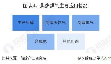 焦炉煤气热值高,约16746kJ/m3,净化后可以作为城市燃料或者工业燃料加以利用。焦炉煤气富含CH4、H2、CO及CO2等有效组分,是优质的化工合成原料,工业企业利用焦炉煤气主要生产甲醇、制取天然气、制取氢气、合成氨等。近年来,随着化解过剩产能,煤焦化行业实行准入原则,焦炉煤气综合利用不仅可以变废为宝,改善我国的能源供给结构,缓解资源、环境约束,同时能够促进煤焦化行业实现清洁、高效、健康可持续发展。未来,随着下游甲醇、天然气、氢气等领域的广泛应用,焦炉煤气将会发挥更大的价值。