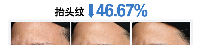 面颊细纹: - 23.08%,抬头纹: - 13.27%,眉间川字纹: - 7.87%,法令纹: - 13.60%,木偶纹: - 8.04%,动态微笑纹: - 12.44%,颈纹: - 7.06%* 。