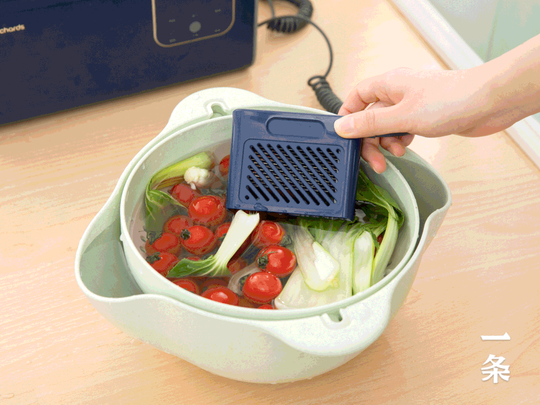 洗菜不用你动手,你只需要把它放在洗菜篮里,它就会帮你洗干净食材。