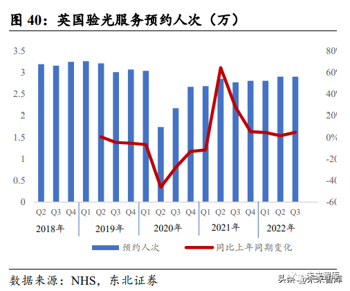 基于英国助产服务需求的数据,并结合封控解封后分娩需求短期复苏趋势,英国产 科服务需求 2022 年整体维持稳定增长,我们预计疫情放开及感染整体对生育影响 较小。