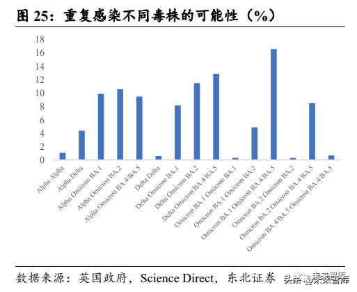 从学术研究和英美重复感染数据可以看出,虽然首次感染可以获得自然抗体,但疫 情政策放开后因奥米克戎变异毒株的种类多,更新换代迅速和奥米克戎产生的自然抗体有效率低的特点,重复感染新冠病毒的概率相比阿尔法和德尔塔毒株盛行时期 显著增高。