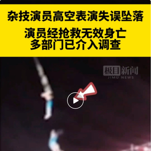 女演员表演时从高空坠落身亡!刚刚,官方通报