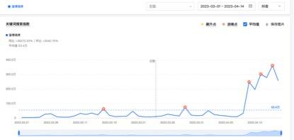 根据巨量算数指数,淄博在抖音上的出圈最早是在3月初,一则“大学生组团到淄博吃烧烤”的话题登上抖音同城榜热搜第一,搜索量高达525.3万,截至发稿,该话题共2.1亿次播放量。
