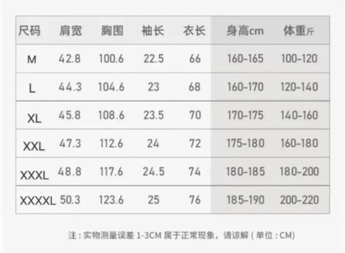 尺码直接从M做到了XXXXL,220斤也能穿,完全不挑人。