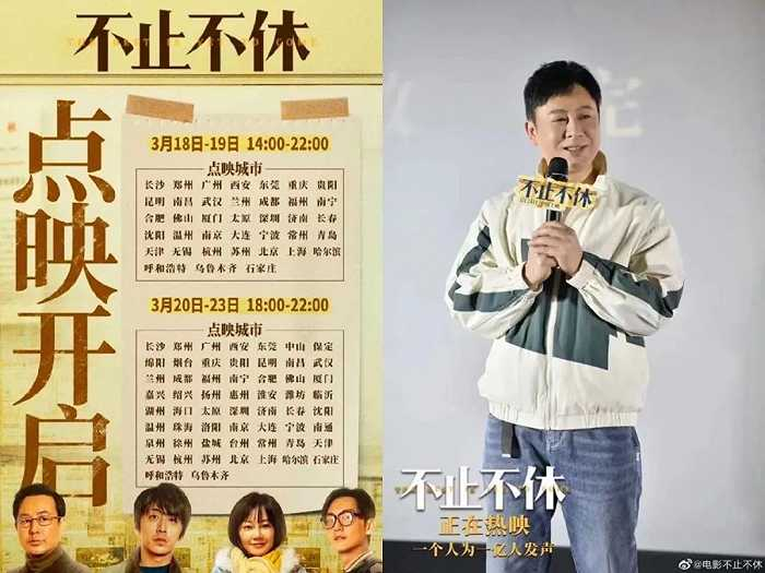 贾樟柯监制、新导演王晶(不是我们熟悉的港导王晶)导演的《不止不休》,是2020年平遥电影节轰动一时的高口碑电影,不少人将其视为“《我不是药神》2.0”,对其票房抱有很高期待。影片宣发也复制了当年《我不是药神》的路线,提前一周开启大规模点映,点映城市达到58个。