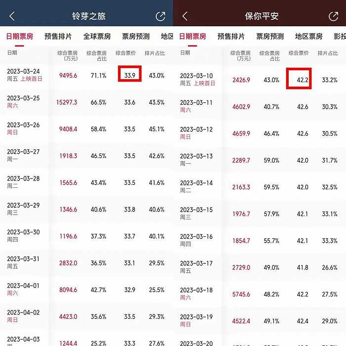 《铃芽之旅》能从冷档期脱颖而出,除了有效营销,与其强大的发行与票补也不无关系。《玲芽之旅》上映首日平均33.9元的票价,远低于同期影片——比如《保你平安》的42.2元、《忠犬八公》的37.1元、《龙马精神》的41.5元。直到现在,《铃芽之旅》的平均票价也低于同期很多影片。
