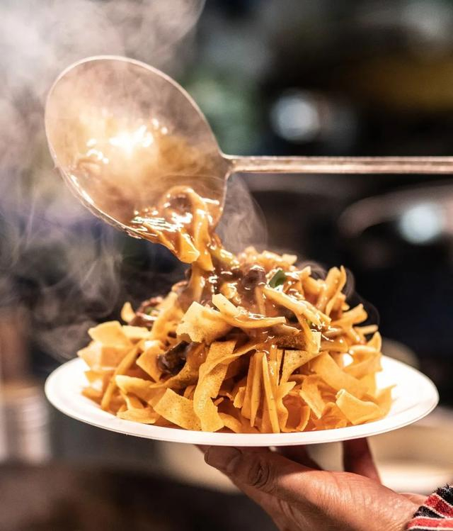 他们家的面是每天早晨现揉的,花生酱也是亲手磨制,选用质量上乘的家用酱油,因此做出的面筋道爽口、熬制的酱汁鲜香醇厚。