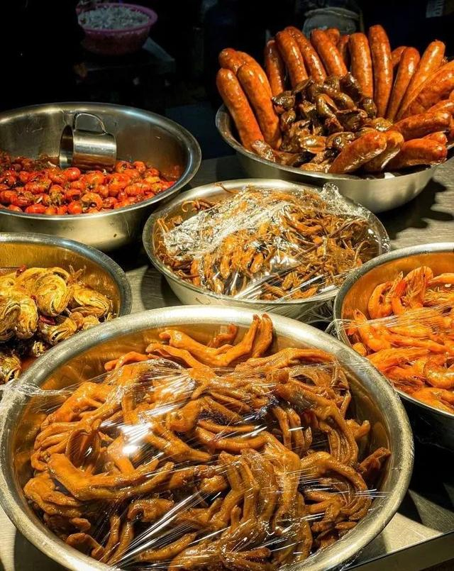 香脆酥软的掌中宝、香辣有嚼劲的卤香肠、肥而不腻的卤牛蛙、香鲜进味的基围虾……再配上一碗软糯可口的绿豆稀饭,简单又美味,作为宵夜简直一绝!