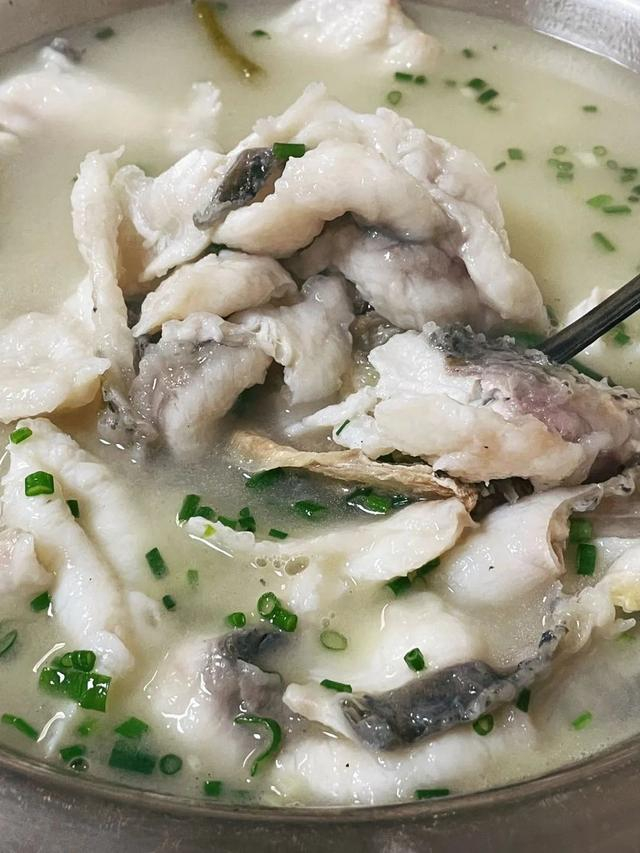徐嫂糊汤粉味道鲜美、口感爽滑,汤底是由个头极小的活鲫鱼长时间熬煮而成,再加上各类调料、淀粉和大量白胡椒调成鱼糊,如此一来,胡椒的辣味混合着鱼糊的鲜美,撒一勺葱花,再配一根金黄香脆的油条,吃一碗就能暖心一整天。