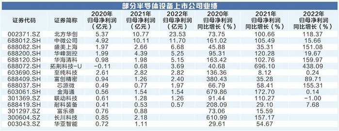 A股半导体设备厂商的业绩增势与国际趋势相似。