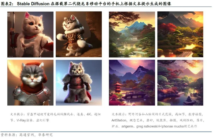 3 月 2 日,高通在 MWC 2023 大会发布全球首个运行在 Android 手机上的Stable Diffusion终端侧演示 Stable Diffusion 模型参数超过10亿,高通利用其 AI 软件栈对模型进行量化、编译和硬件加速优化,使其成功在搭载第二代骁龙 8 移动平台的手机上运行 。此外,华为新一代 P60系列手机将于 5 月上线智慧搜图功能,该功能通过对模型进行小型化处理 ,实现其在端侧轻量化应用。我们认为模型压缩技术是实现 AI 大模型在边/端部署的核心技术。当前,谷歌、微软、腾讯等厂商在该领域均有布局,将加速 AI 技术与智能终端融合, 国内SoC设计公司有望深度受益 。