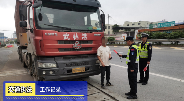 4月12日晚,钦州市灵山县公安局交通管理大队组织民警开展“春季守护行动”交通违法行为夜间整治行动。当晚21时许,民警在国道209线3582公里路段执勤时,对一辆涉嫌严重超载的重型自卸货车进行检查,检查过程中,货车司机脸色通红,眼神恍惚。