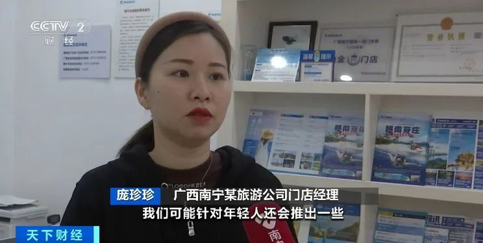 广西南宁某旅游公司门店经理 庞珍珍:我们可能针对年轻人还会推出一些“机票加酒店”的自由行的模式,景点自己去逛,一天赶几个景点也行,一天玩一两个景点也行。