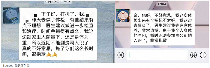 有的突然不回复消息,继续跟进就被拉黑;有的上午刚确定完入职时间,下午就说又仔细考虑了一下,觉得不合适不来了。这一条拒绝信息是为数不多有理有据、礼貌周到的措辞。