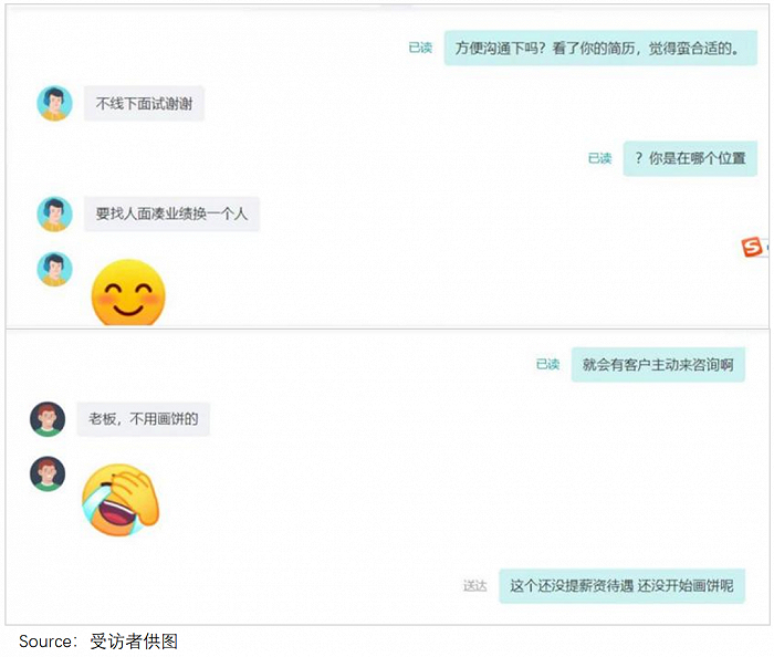 苗悦看到这位求职者的投递提醒时,本可以直接忽略,但那天心情实在美丽——下班前,候选人终于确认可以入职,她破例回复了这个“幸运儿”。