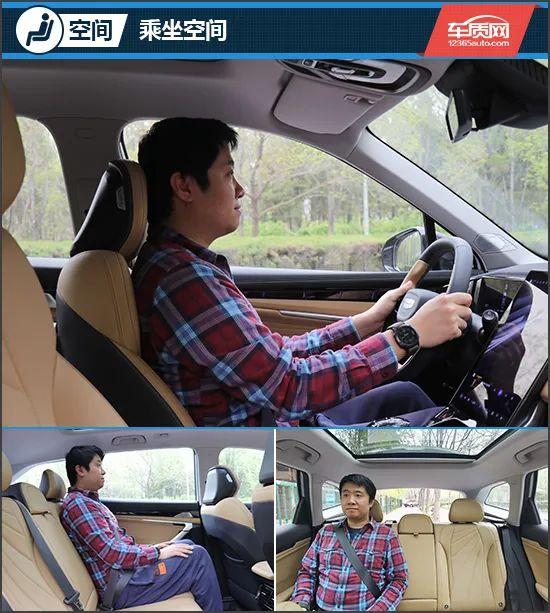 在空间体验方面,身高180cm的体验者进入车内调整好座椅后,头部空间两拳,整体空间表现较为宽裕。保持前排不动,体验者来到后排,头部空间为一拳,腿部空间为两拳,后排整体乘坐空间较为宽敞。