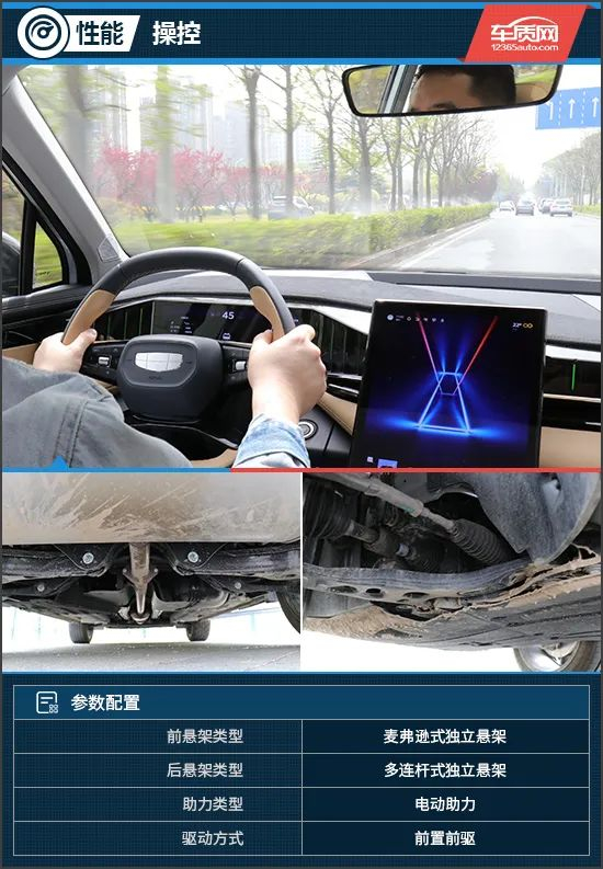 在操控方面,吉利博越L转向手感细腻,指向性也很精准,在高速行驶时方向盘的转向力度还略微加重一些。该车的悬架系统调校非常出色,悬架阻尼很有韧性,同时对于路面上的细小的振动过滤非常彻底。而在经过较大的减速带以及起伏路面时,车身也能保持稳定的姿态。