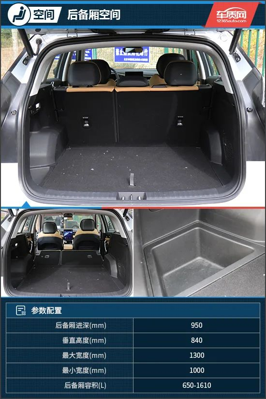 吉利博越L的后备厢地台较为平整,并且左侧还配有小型储物格。后备厢常规容积为650L,当后排座椅比例放倒后,容积可扩展到1610L,进一步提升了储物能力。