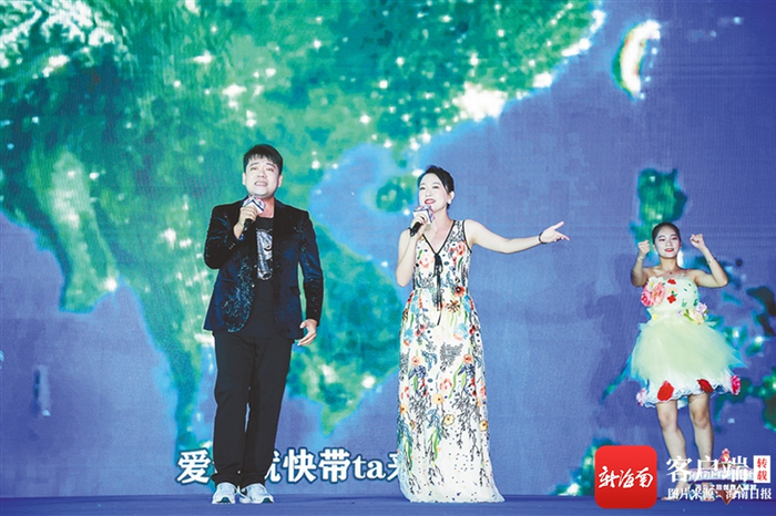 2020年,抖音“海南自贸星推官”活动上,伍志伟和伍志洁演唱《来三亚》。 受访者提供