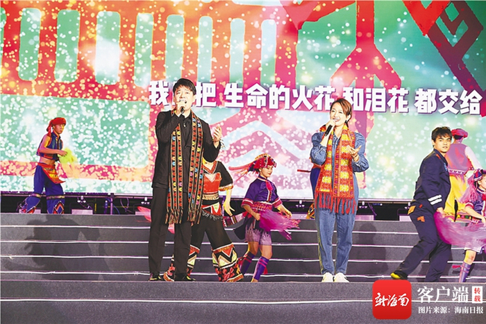 2021年,三亚市“三月三”晚会上,伍家兄妹演唱《黎苗青春日记》。 受访者提供