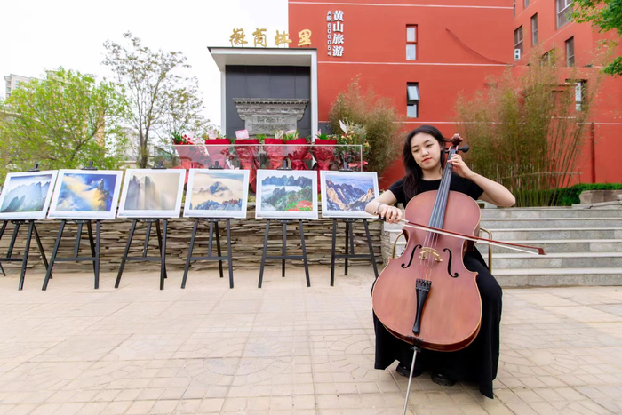 在店面的显眼位置,徽商印信/徽州明信片则将黄山风光和徽州特色以另外一种形式展露出来。嘉宾们在这里盖下“且行徽州拾春光”的专属签章,观看了国画大师现场作画,聆听了婉转悠扬的大提琴演奏,感受别样的徽之浪漫。