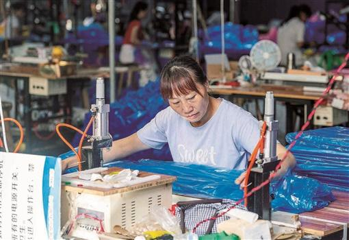 江华瑶族自治县水口镇如意社区的乡村振兴车间,村民在生产线上忙碌着。蒋克青 摄