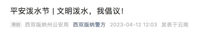 记者注意到,此前,包括西双版纳、陇川等云南多地曾发文倡议文明泼水。