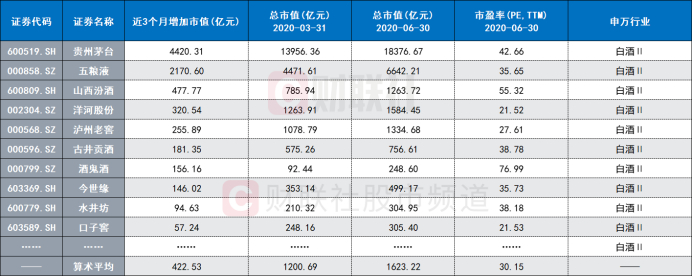 注:白酒股2020年二季度普遍市值大增