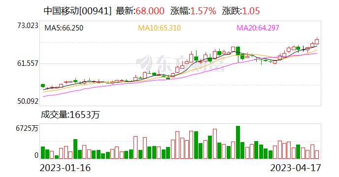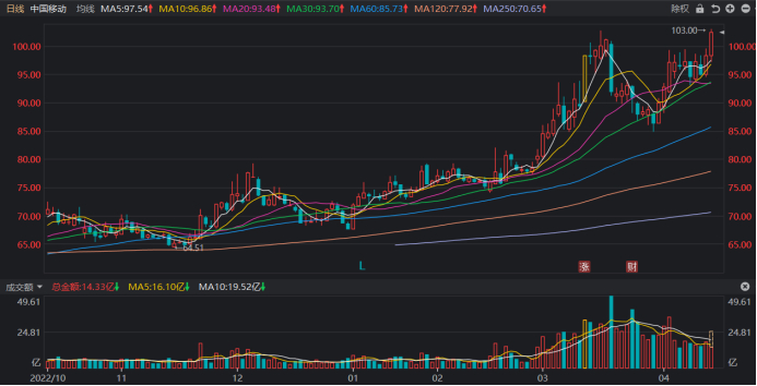 注:中国移动股价近期持续走高(截至4月17日10时30分左右)