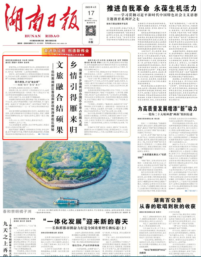 湖南日报头版头条刊登了