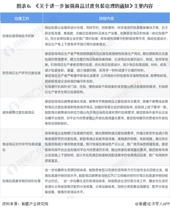 2022年9月,国务院发布《关于进一步加强商品过度包装治理的通知》,《通知》要求要高度重视商品过度包装治理工作,到2025年,基本形成商品过度包装全链条治理体系,相关法律法规更加健全,标准体系更加完善,行业管理水平明显提升,线上线下一体化执法监督机制有效运行,商品过度包装治理能力显著增强。月饼、粽子、茶叶等重点商品过度包装违法行为得到有效遏制,人民群众获得感和满意度显著提升。